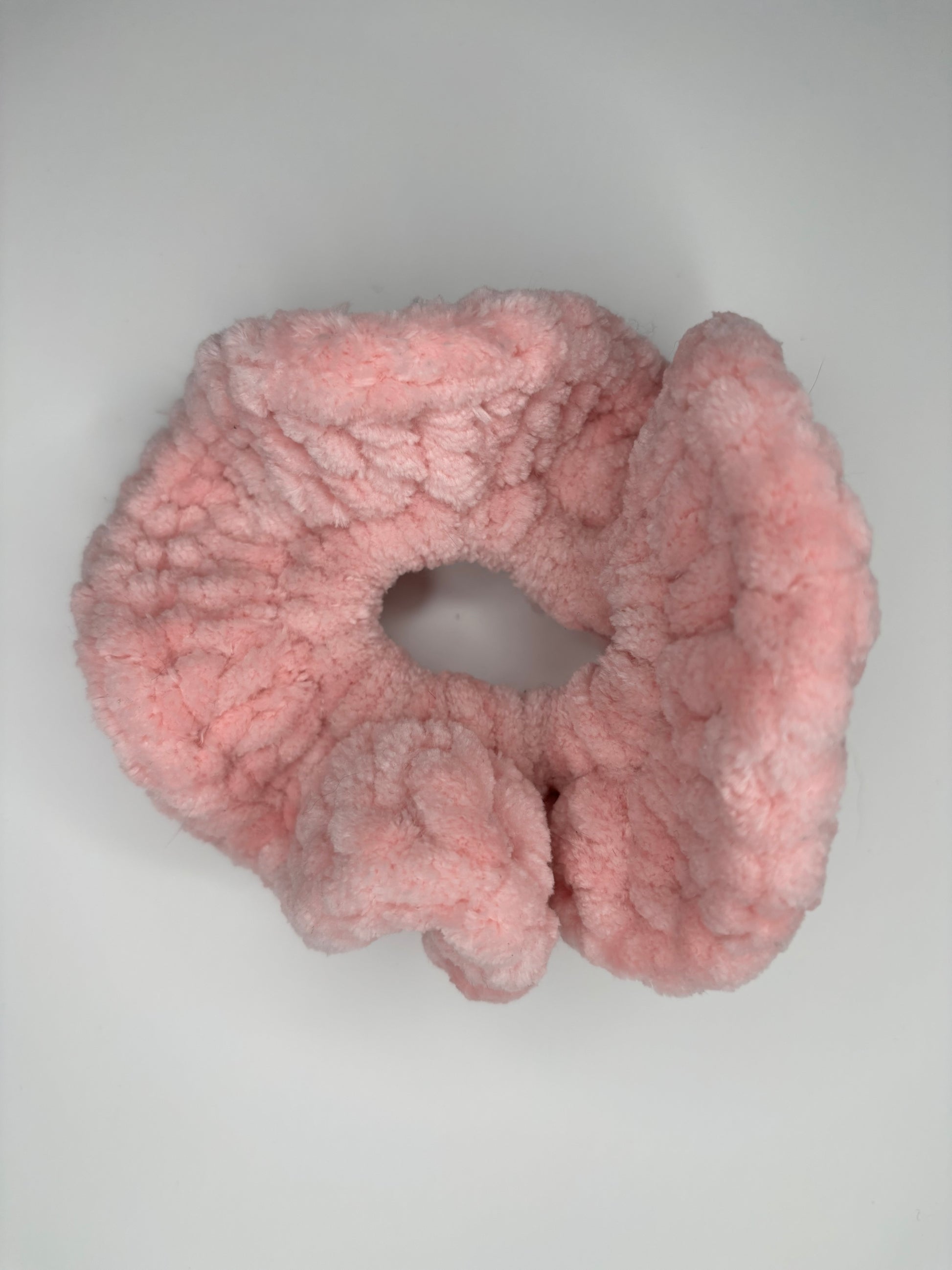 A cute light pink scrunchie crocheted with love! Soft and versatile for whatever style your heart says!